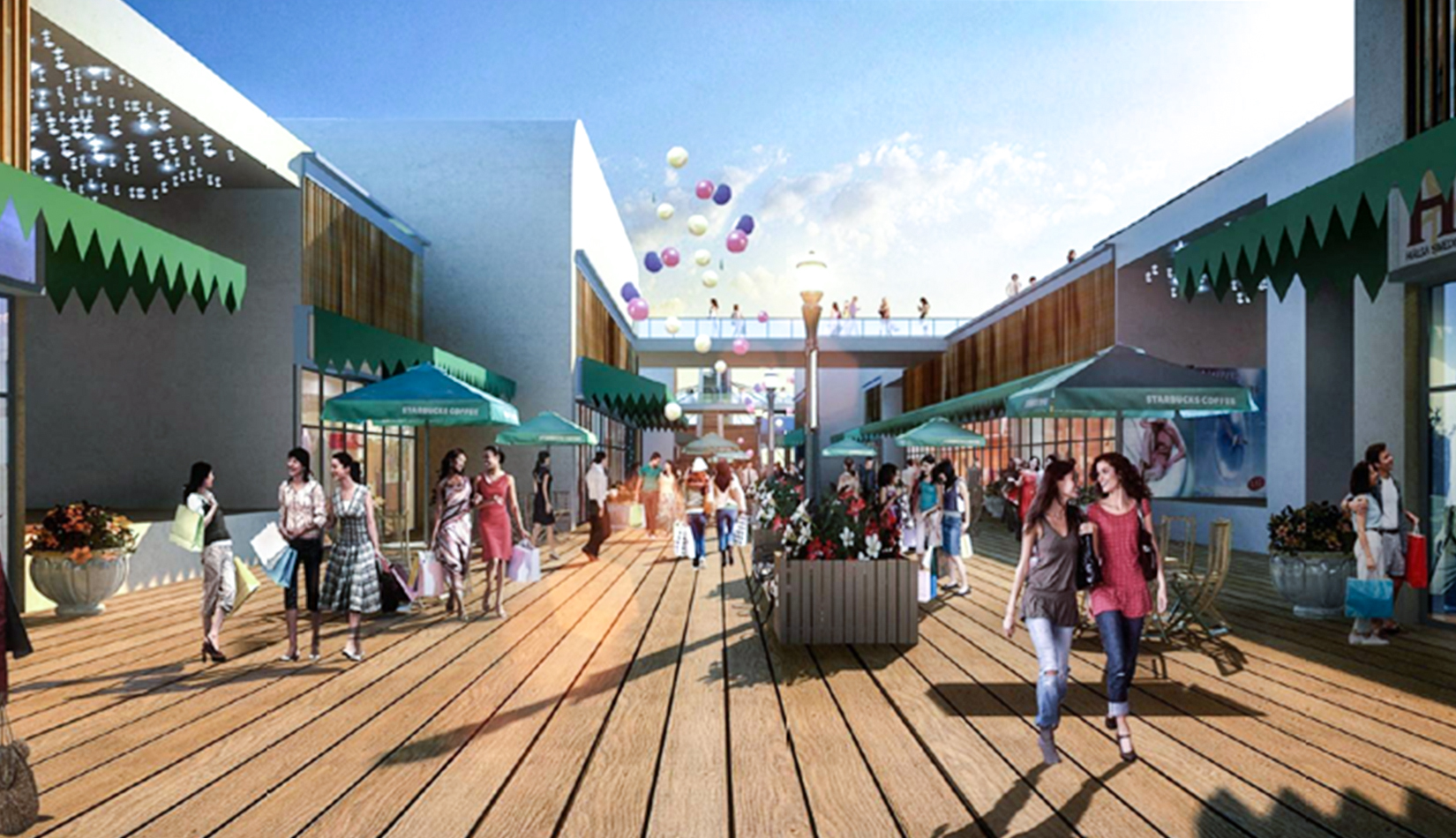三區(qū):三個特色分區(qū),分別為門戶形象展示區(qū)、入口休閑購物區(qū)、特色餐飲娛樂區(qū)