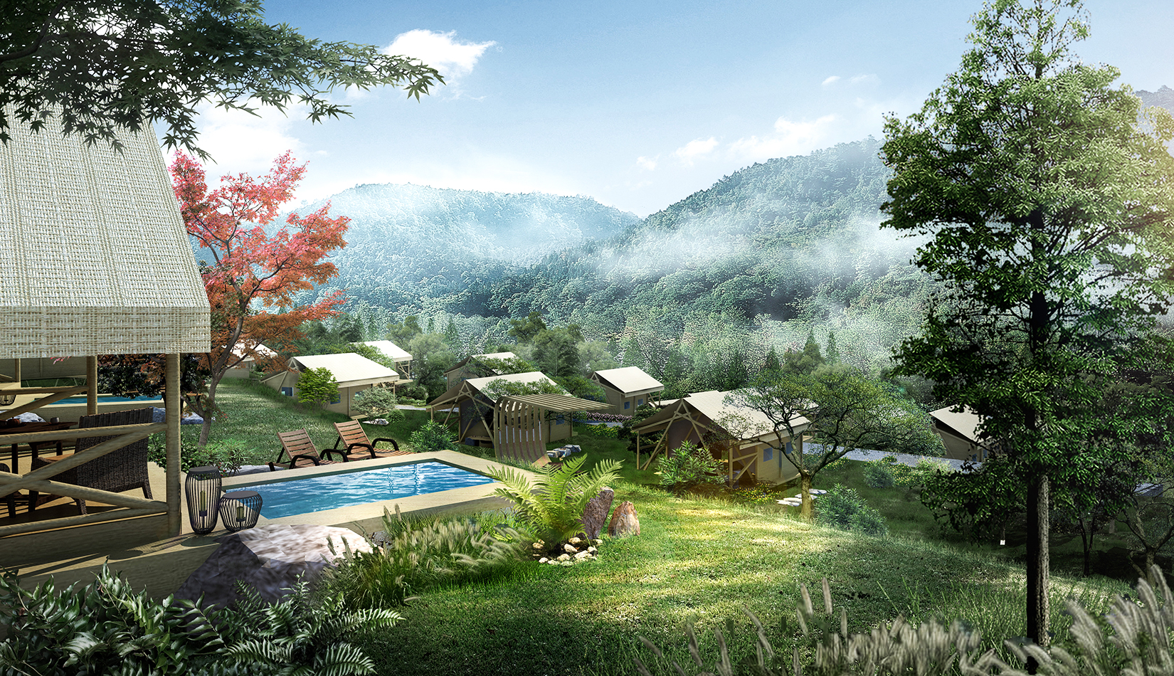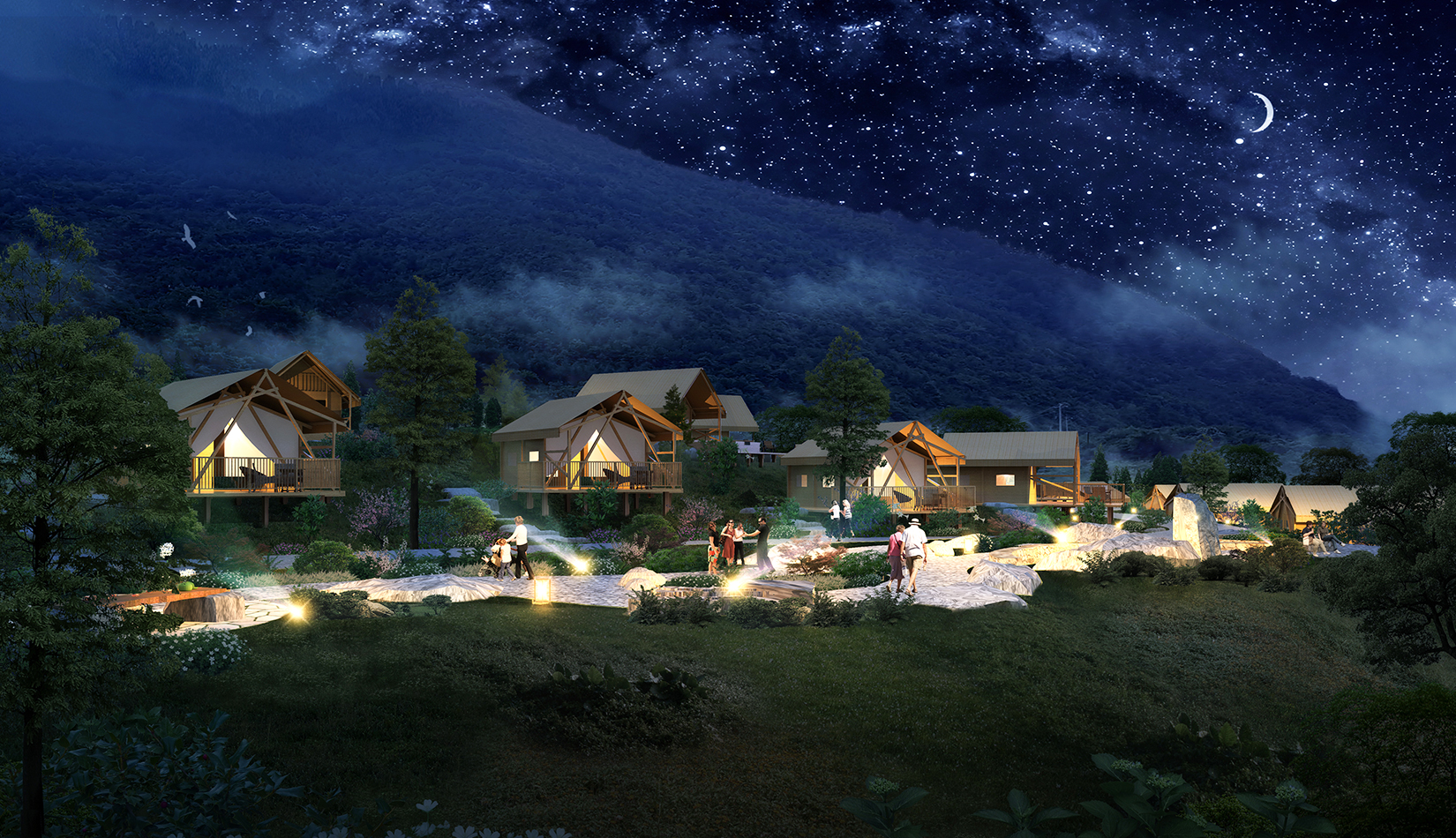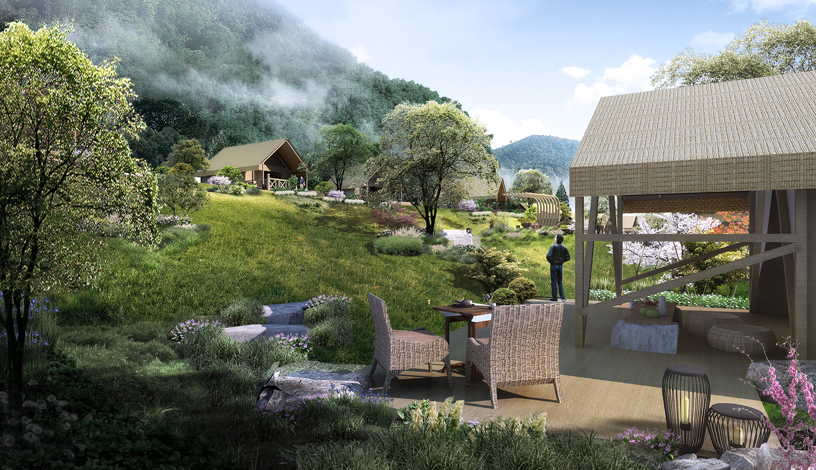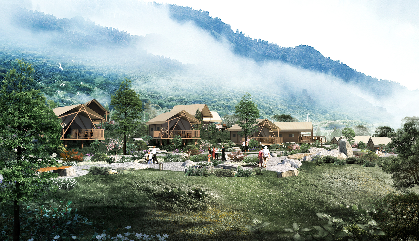 景觀設(shè)計從野奢度假酒店的“野”和“奢”兩字入手,融入荒野生態(tài)的設(shè)計理念,又要與場地相融合、與原生態(tài)相映、與當?shù)氐拿袼罪L(fēng)情相交匯,突出當?shù)氐奈幕黝},強調(diào)高品質(zhì)的自然、野奢度假,從而打造出一個具備個性與特色,使游客能夠享受到自然野趣體驗的景觀環(huán)境。