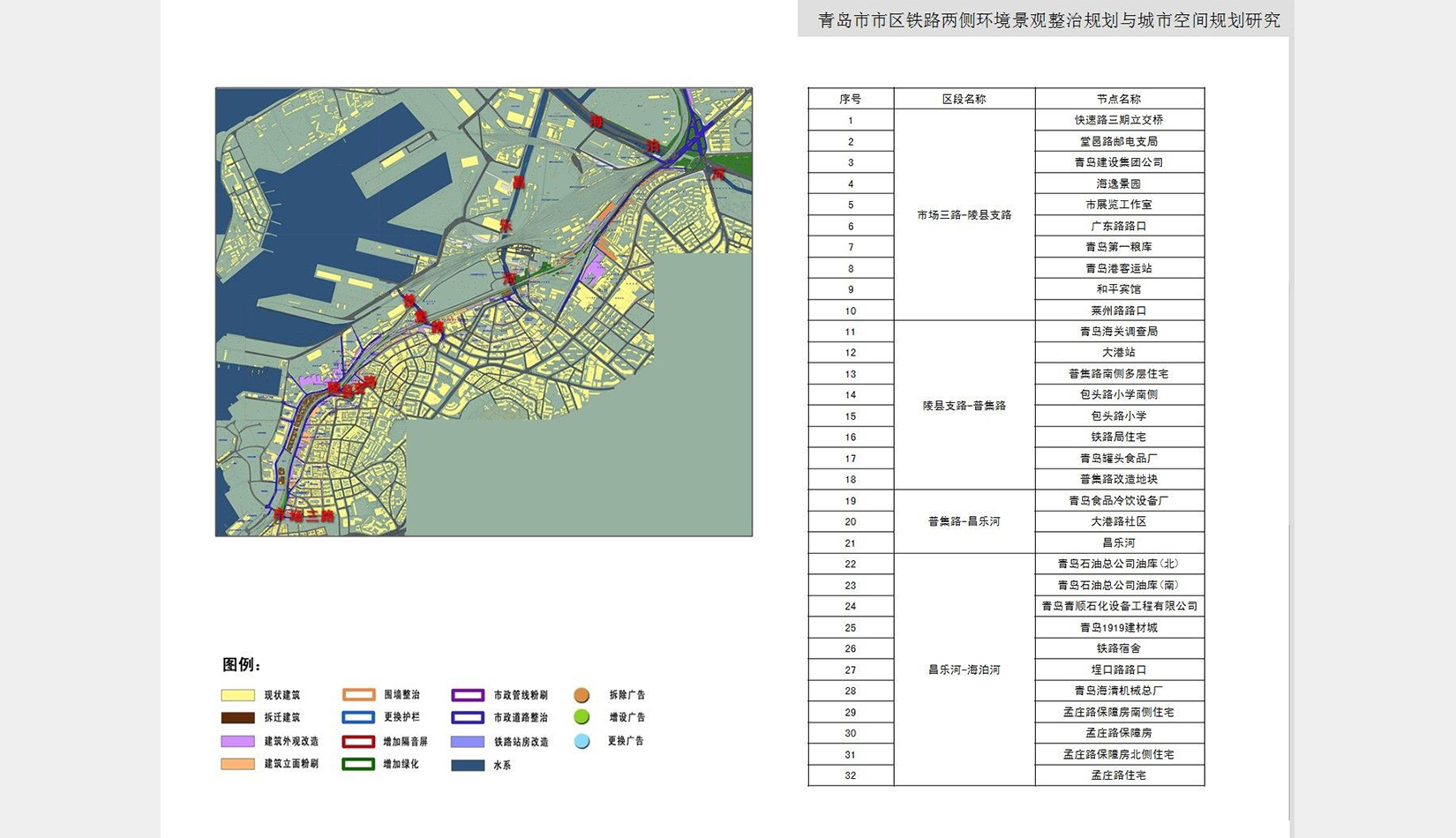 按照”一個目標(biāo)、分期實(shí)施、統(tǒng)一組織”的總體要求,規(guī)劃將鐵路沿線打造成為:體現(xiàn)青島城市規(guī)劃建設(shè)與管理水平的窗口; 展示青島城市熱情友好與和諧的笑臉;感受青島特色魅力與城市功能優(yōu)化提升的風(fēng)景線。
