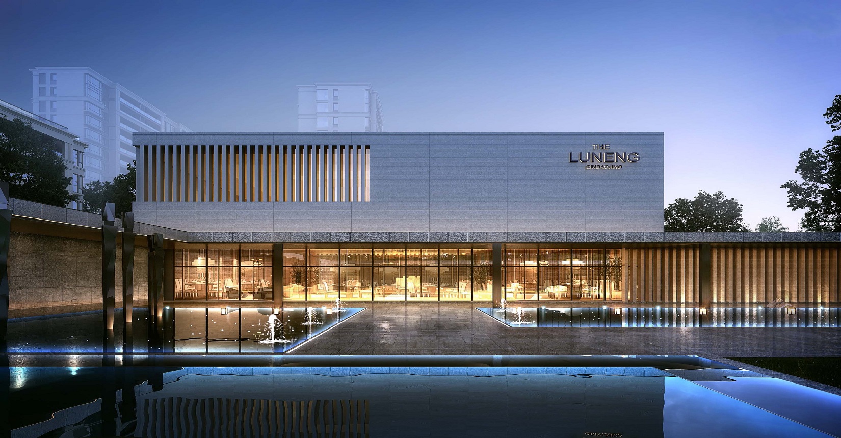 立面主體采用淺黃色真石漆,色調明快,不失品質感。局部配合深咖啡色涂料,虛實對比強烈。高品質玱璃欄板強調建筑的現(xiàn)代感,更具有公建化風格。基座采用米黃色石材,凸顯建筑的穩(wěn)重大氣。