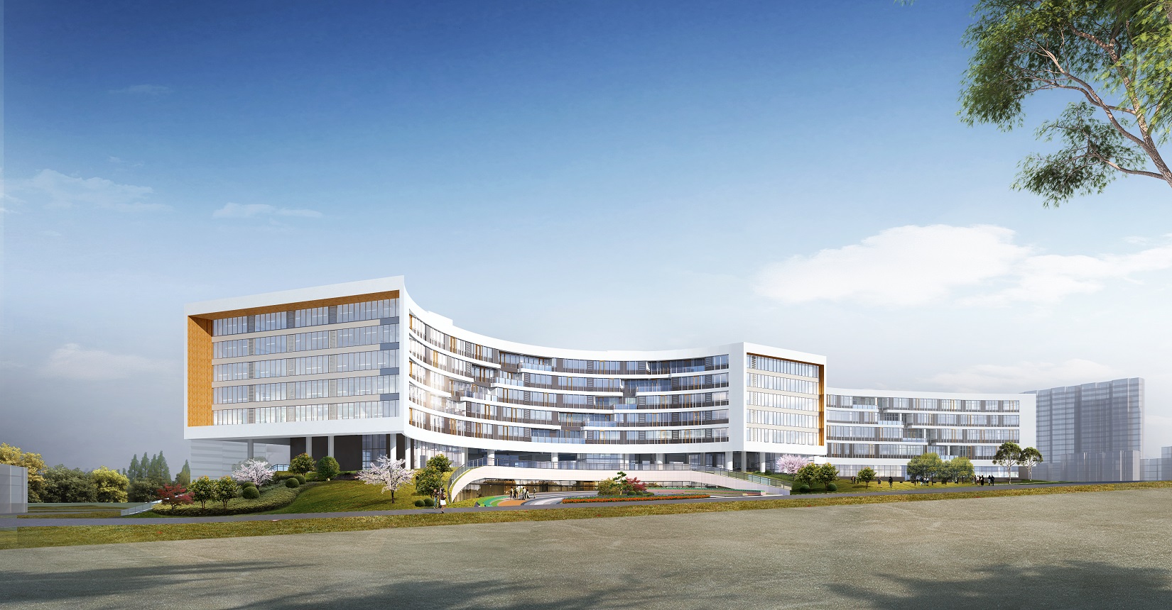 考慮到用地形狀、使用功能和日照等條件因素的影響,總平面布局以“生長”為主題,寓意生命向上生長的力量,生生不息,無限伸展。枝杈無限分支向上生長,象征著無限的力量與生機(jī)。而中醫(yī)的健康講究氣血通暢,循環(huán)往復(fù),從而衍生出“五行”相輔相成的設(shè)計(jì)理念。根據(jù)五行方位確定五行主題。將金水湖與建筑相融合,金水湖為“水”,輔“金”“木”“火”“土”四個(gè)主題廣場。